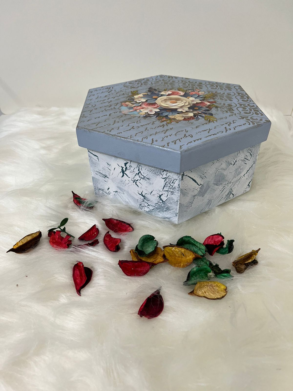 Caixa multiuso em MDF decorada sextavada
